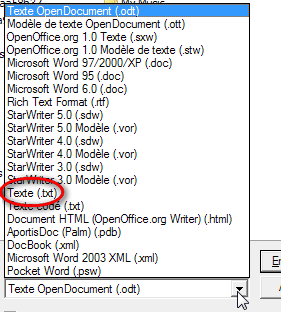 - Dans la zone "Type de fichier", choisis "Texte (.txt)"